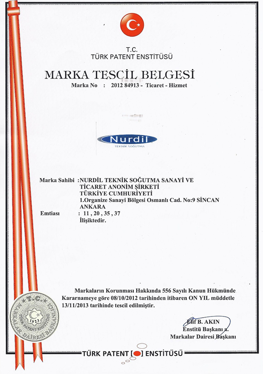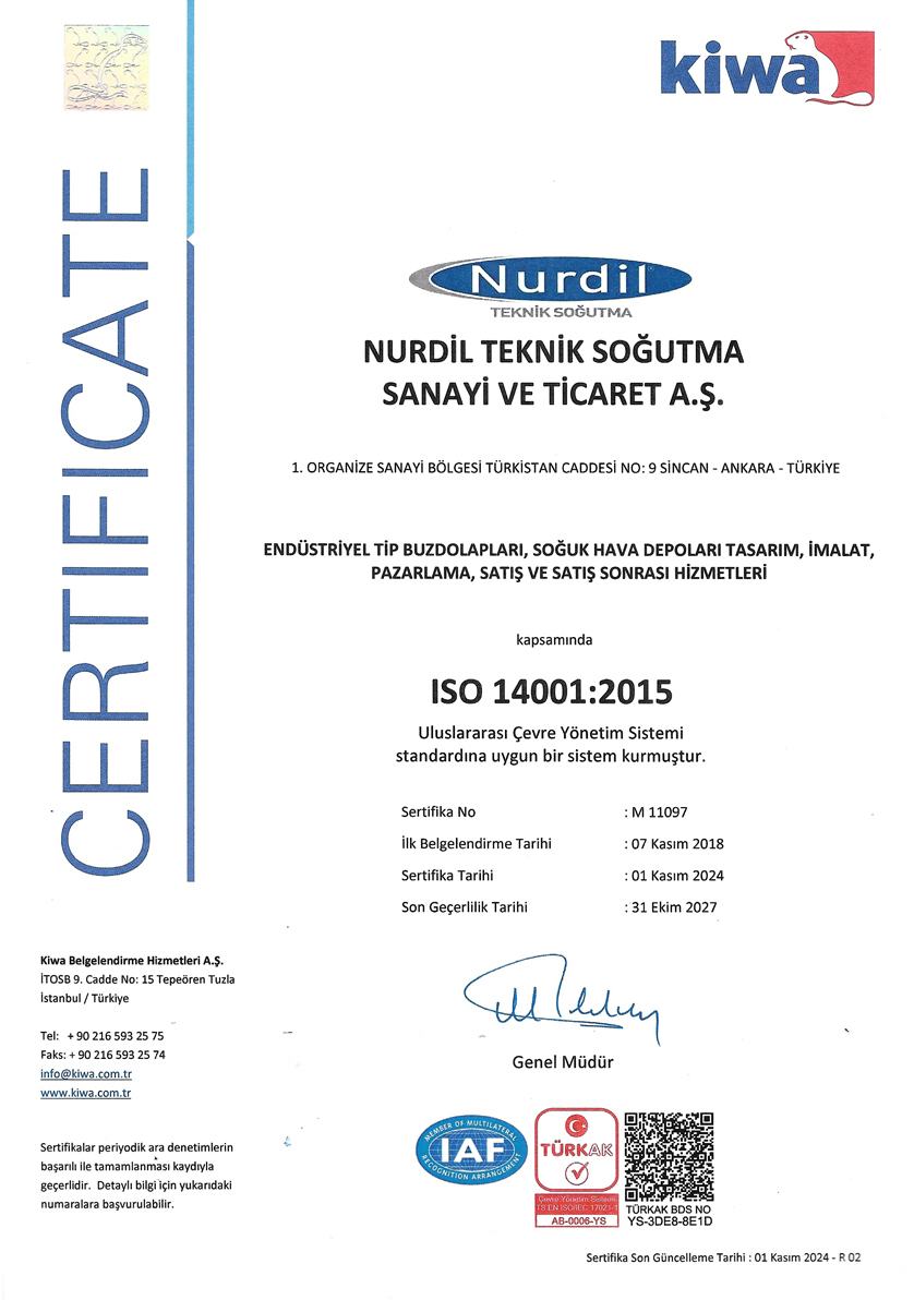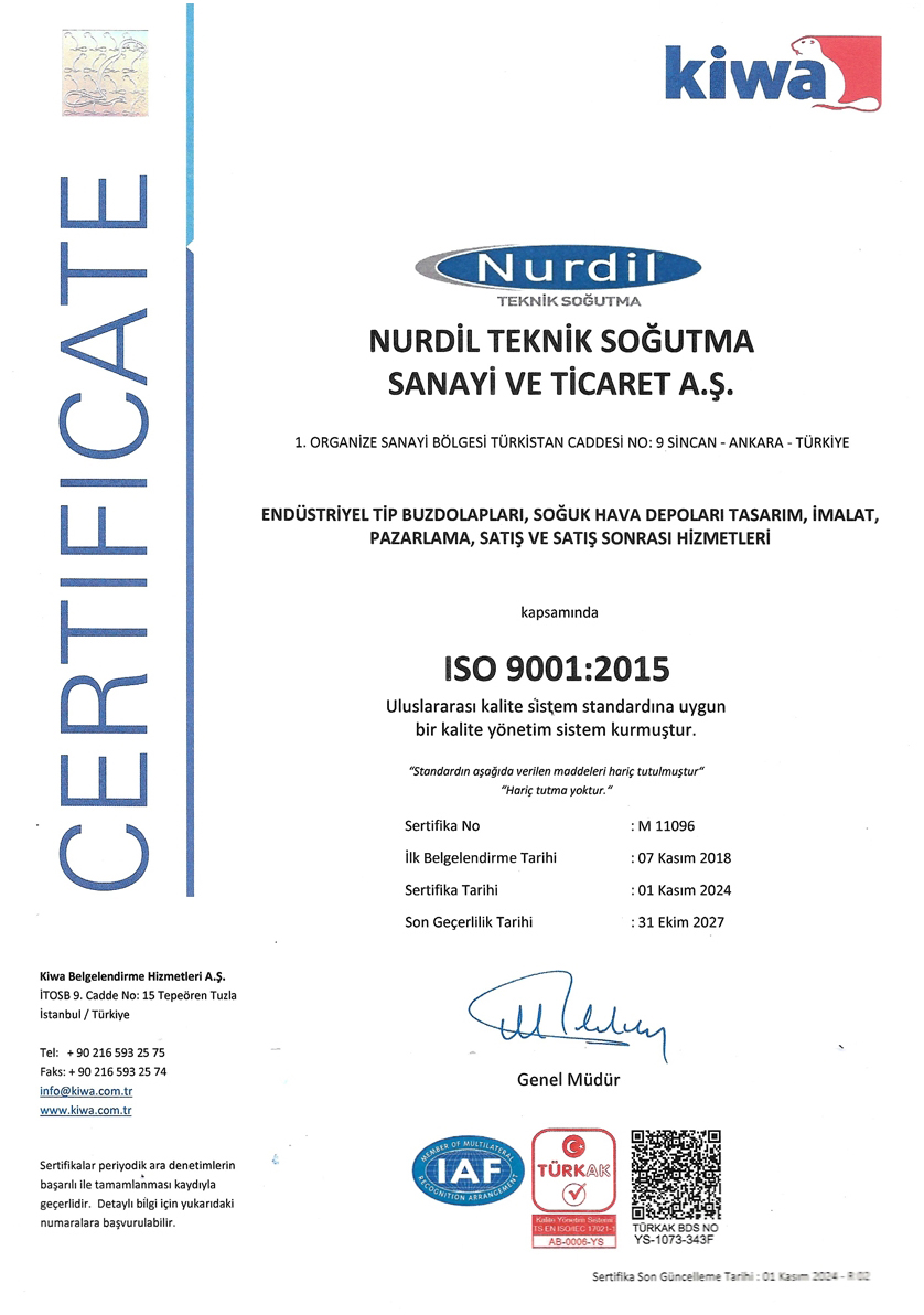 Nurdil Teknik Soğutma Sanayi ve Ticaret A.Ş. aşağıdaki uluslararası standartlara uygun olarak faaliyet göstermektedir: