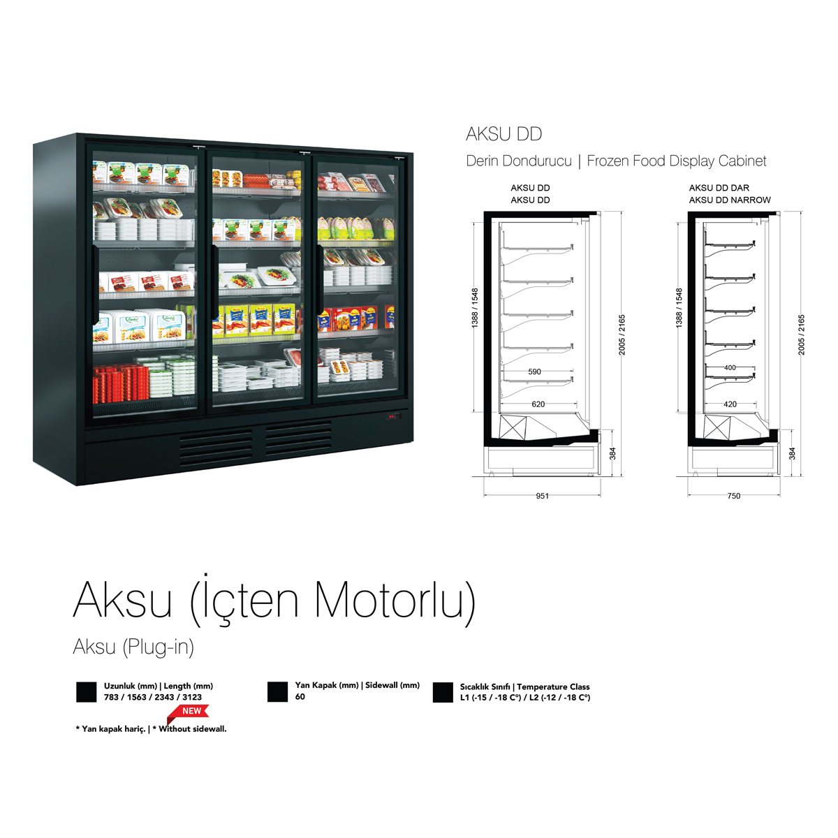 Bu ünite, tam cam kapıları sayesinde net ve etkili ürün görünürlüğü sunar; buğulanma önleyici, bonded (çerçevesiz yapıştırma) ve ısıtmalı cam seçenekleri ile desteklenebilir. Dondurulmuş gıda depolama ve teşhiri için tasarlanmış olup, yüksek kapasiteli raf sistemi, homojen sıcaklık kontrolü ve yüksek verimli yalıtım yapısı ile üstün performans sağlar. LED aydınlatma ürün sunumunu güçlendirirken, enerji verimli çalışma düşük işletme maliyetleri sunar. Ayarlanabilir raflar, modüler yapı, ergonomik erişim ve kolay bakım özellikleri tasarımı tamamlayarak esnek ve kullanıcı dostu bir çözüm sunar.